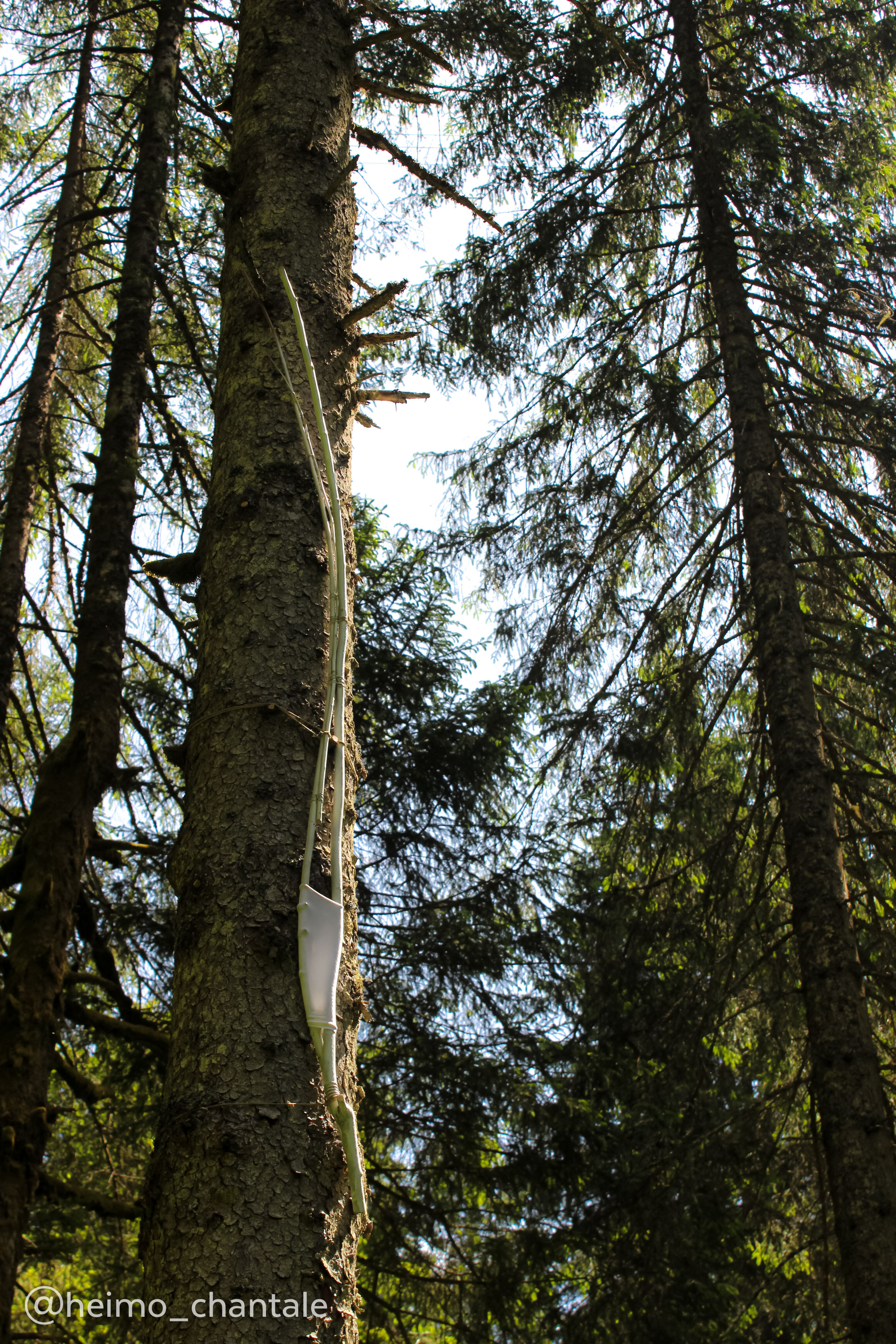 Entre les arbres et le murmure du vent, Chantale Heimo tisse un lien silencieux mais puissant entre l’homme et la nature. En utilisant les matériaux naturels de la forêt, chaque élément devient un hommage au lien essentiel entre l’homme et la terre. La nidation sur les troncs d’épicéa, un geste simple mais profond, symbolise cette relation complice dans laquelle l’homme trouve refuge et renouvellement au coeur du monde végétal. La forêt n’est pas seulement un lieu de vie et de croissance, mais aussi un lieu où les racines invisibles mais omniprésentes de l’humanité sont ancrées.