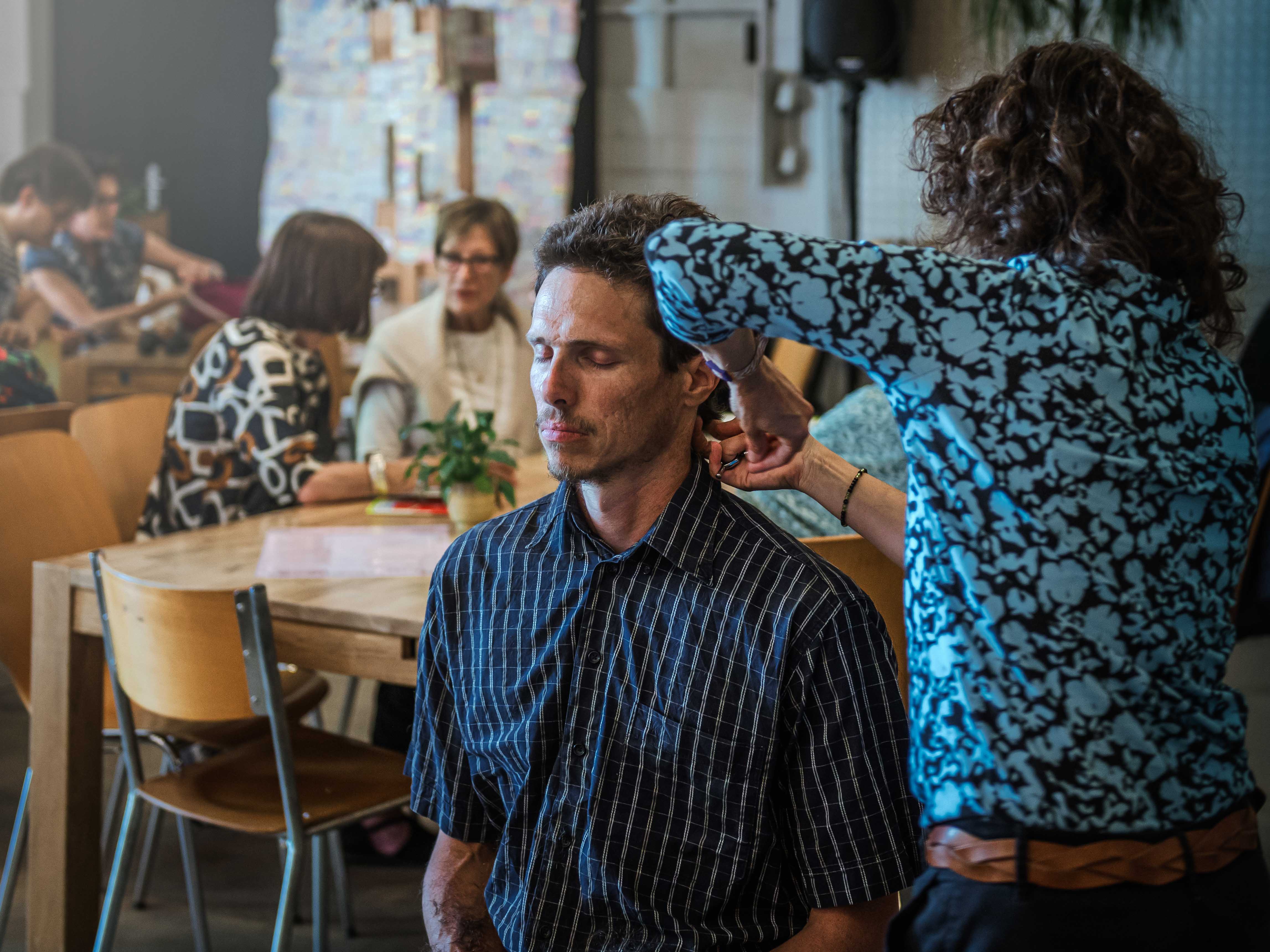 Création d’une sculpture éphémère sur les cheveux d’un modèle dans le cadre de mon projet itinérant de création Paysage capillaire. Dans ce projet j’observe l’influence du lieu et de la personne ainsi que la transformation énergétique qui s’opère pendant mon processus de création. En utilisant les cheveux comme matière de création.
